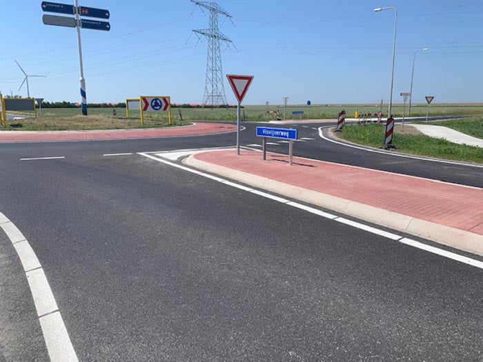 Ze hebben de volledige asfaltconstructie van de huidige rotonde vervangen met QX19-FI aramide vezel versterkt asfalt (SRA Reinforced Asphalt) . Schagen-Infra SRA Asphalt is geschikt voor zwaarbelaste verhardingen en vooral wringend verkeer op locaties waar de ondergrond een lage draagkracht heeft. Hierbij zijn ook de aansluitingen van de Kamperhoekweg en de Visvijverweg meegenomen. De nieuwe rotonde heeft in het midden een bredere overrijdbare strook gekregen. Dit voor verkeer dat te lang is om over de rijbaan van de rotonde te kunnen rijden.