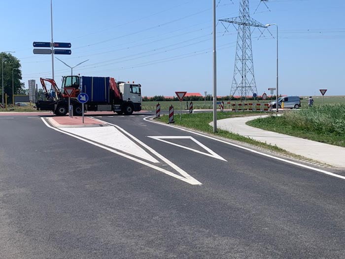 Zodra de bouw voltooid is, zal de definitieve deklaag worden aangebracht, waarmee de weg volledig wordt afgewerkt en geschikt wordt voor langdurig gebruik.